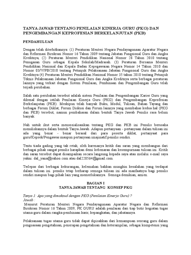 Berikut daftar pertanyaan dan jawaban seputar penilaian kinerja guru (pkg) dan penilaian prestasi kerja (ppk):